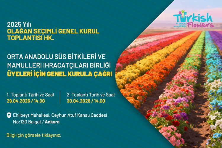 Orta Anadolu Süs Bitkileri Ve Mamulleri İhracatçıları Birliği Üyeleri İçin Genel Kurula Çağrı